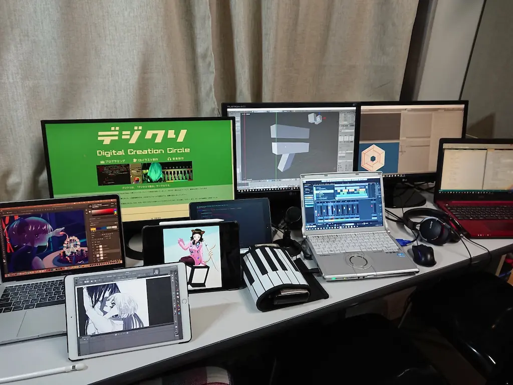 プログラミング、ゲーム開発、イラスト、3DCG、音楽(DTM)、動画制作、VTuber など、幅広いジャンルでデジタルコンテンツの制作ができます。